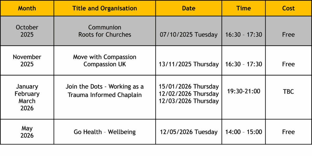 The webinar programme beginning in October will be exploring justice, global poverty, trauma, communion and much more!